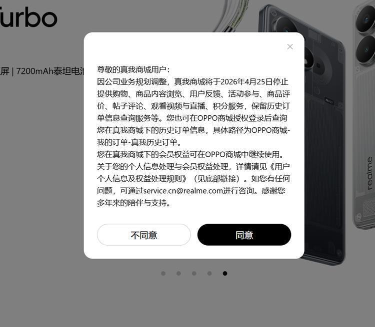 日前,realme真我在官网发布通知称,真我商城于4月25日正式停止运营,自有App、网页端及小程序同步下线,品牌全面回归OPPO体系。据官方介绍,真我商城停服后,商城会终止购物、商品浏览、活动参与、积分兑换、直播观看等全部核心功能,仅保留历史订单查询入口,有效期至2027年4月25日。真我手机的用户则可以通过OPPO商城授权登录,在“我的订单—真我历史订单”中同步查看过往记录。